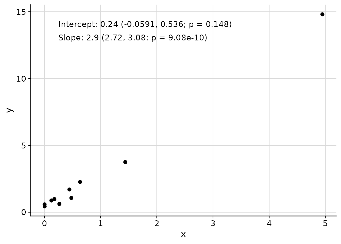 data_mod$y <- data_mod$x * 3 + rnorm(10, sd = 0.5)