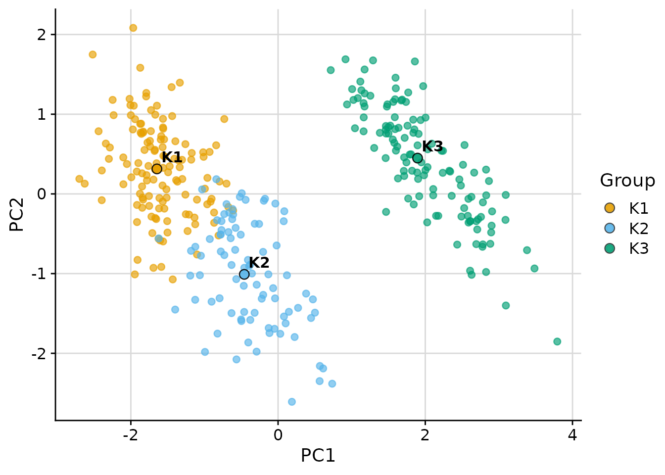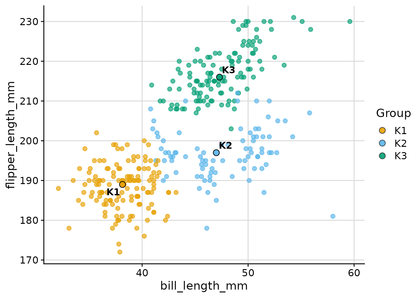 km <- kmeans(scale(penguins[vars_penguin]), centers = 3)