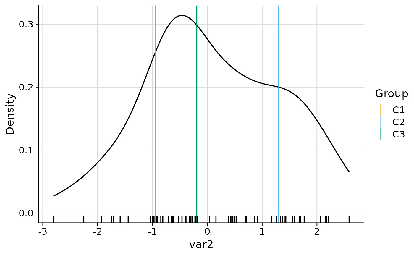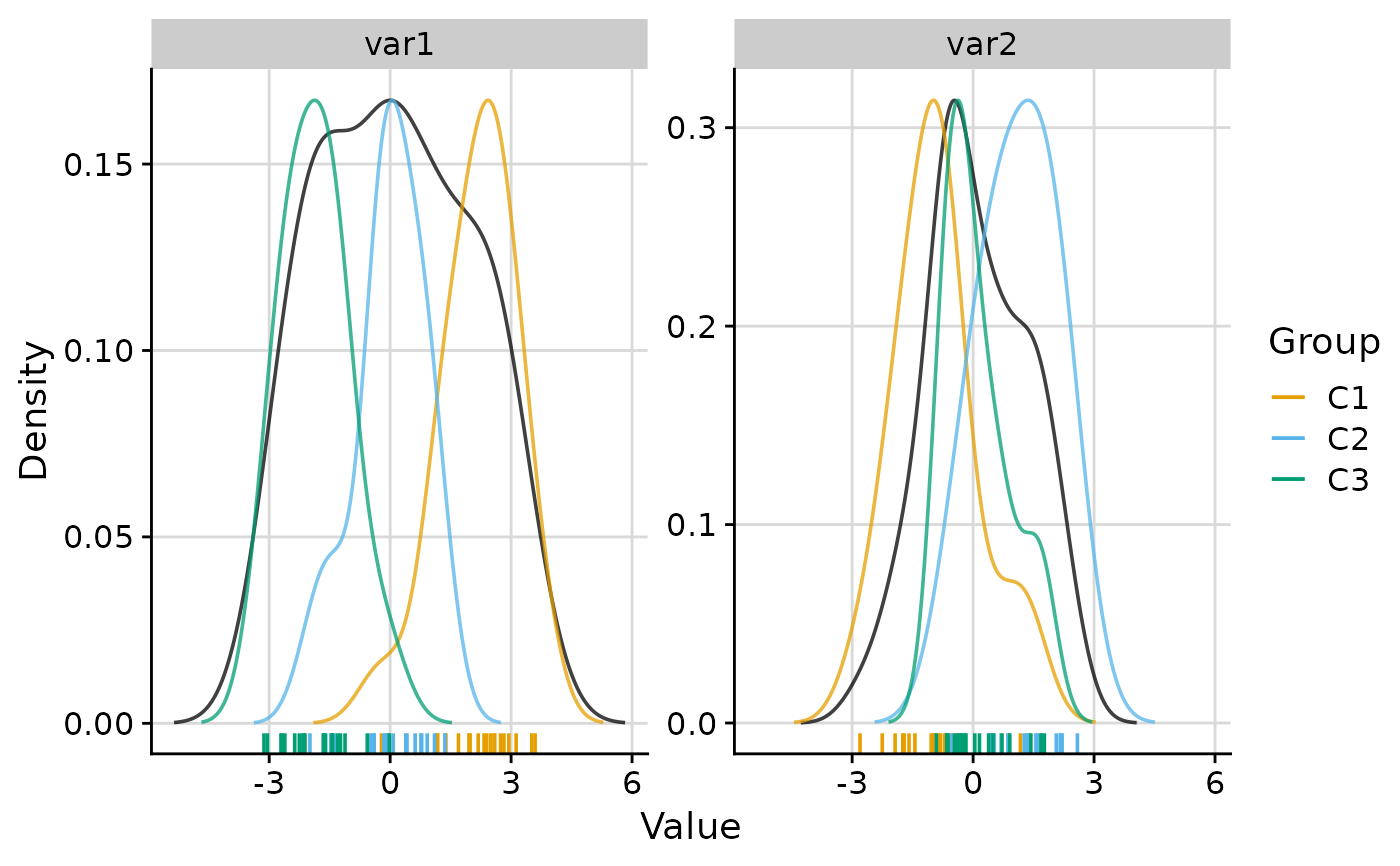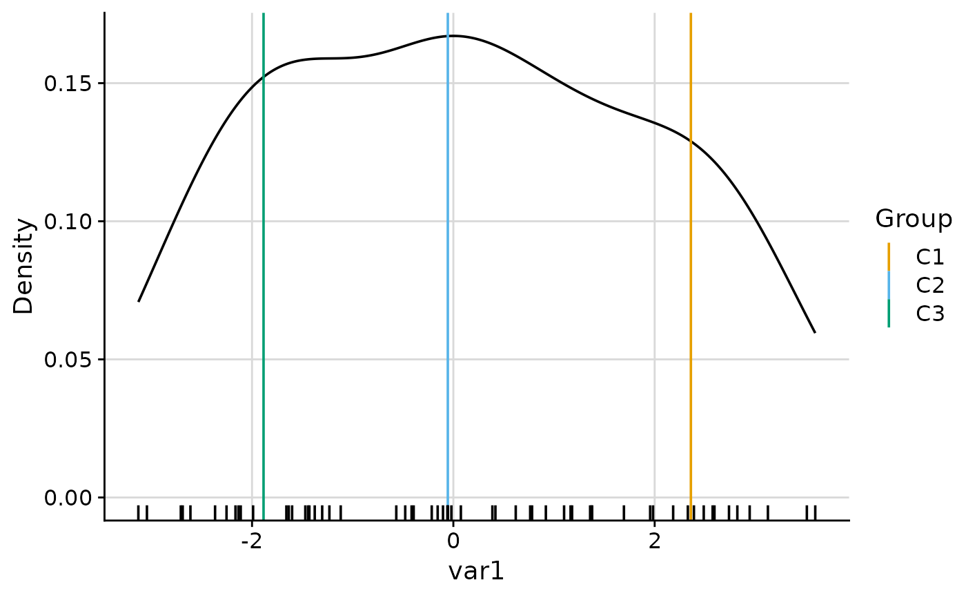 NULL. Controls the rug added below the density.NULL(default): per-cluster rug whendensityis"cluster"or"both", overall rug whendensityis"overall"."cluster": per-cluster rug, coloured by cluster."overall": overall rug with no cluster colouring. See Details.- density_overall_weight